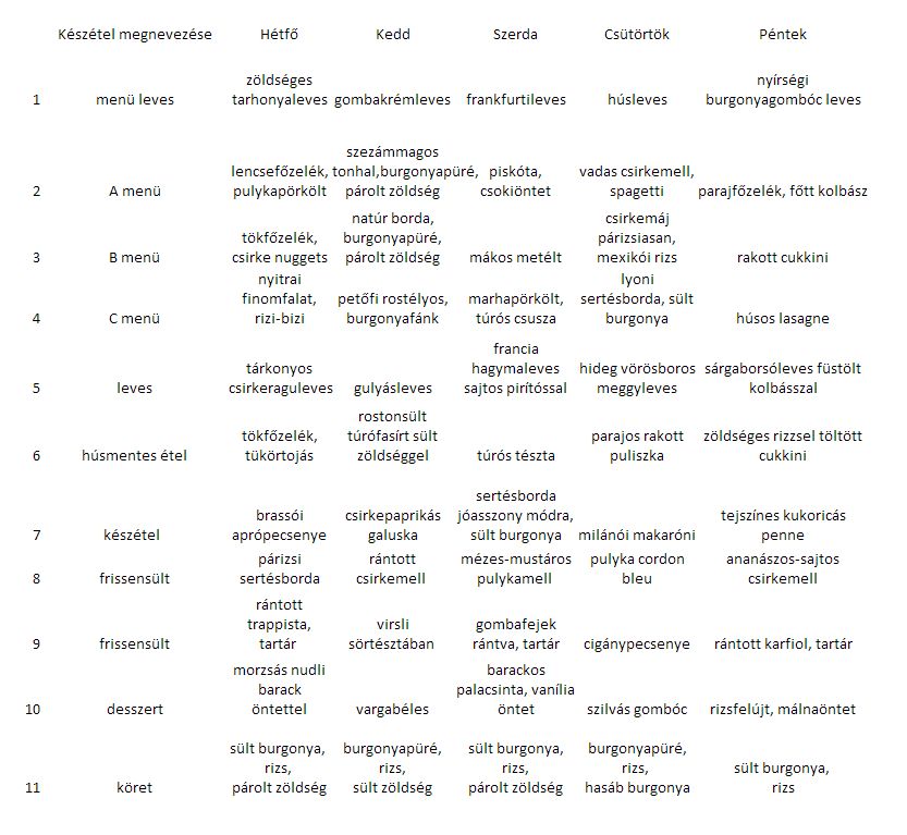 | FH Gasztro Menü - 2013. 17. hét - április 22. - április 26. | ||