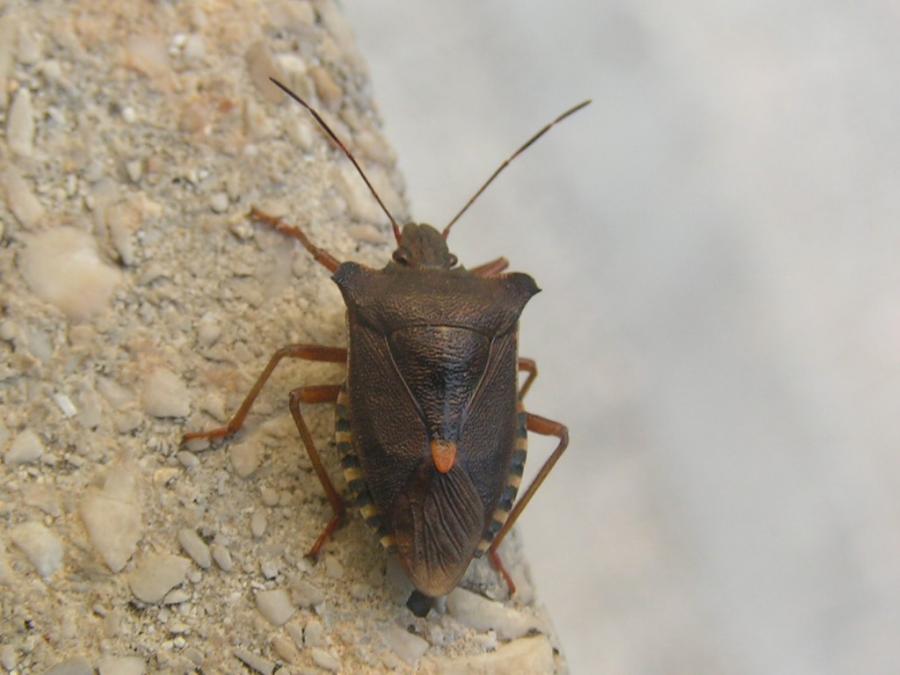 A vöröslábú címerespoloska júniustól októberig látható. Széles vállával úgy néz ki, mintha rögbimezt viselne. Főként a fák nedvével, és más rovarokkal táplálkozik.