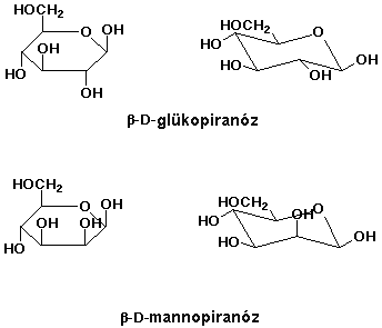 a szék formáját. Hasonlítsuk össze a béta-D-glükopiranóz