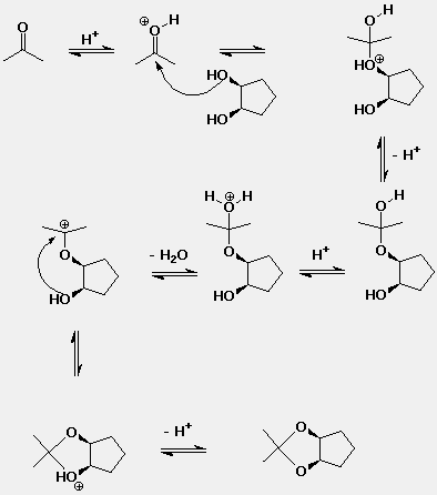 az aceton gyûrûs acetáljának savkatalizált