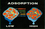 A szennyezôk adszorbeálódnak a talajszemcsékre. A nagy szennyezôkoncentrációt kék szín jelzi.