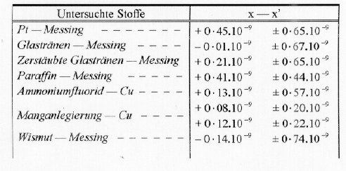 Newton fand für eine Reihe von untersuchten Materialien, daß Gravität und Trägheit jedenfalls bis auf etwa 1/1000 ihrer Größe mit einander proportional sind. Bessel zeigte, bei Gelegenheit seiner Pendelversuche, daß die etwaigen Abweichungen höchstens 1 : 60000 erreichen könnten. Eötvös hat mitgeteilt, daß es ihm mit seinen Apparaten möglich geworden sei, die Proportionalität bis auf 1/20 000 000 zu eiweisen; er macht aber keine Angaben über das Beobachtungsmaterial. In der Preisschrift wird auf Grund des neuen Beobachtungsmaterials nachgewiesen, daß für eine ganze Reihe sehr verschiedener Materialien (Platin, Magnalium, Kupfer, Wasser, krystallisiertes Kupfersulfat, Kupfersulfatlösung, Asbest und Talg) die Abweichung von dem Gesetz der Proportionalität jedenfalls nicht größer als etwa 1/200 000 000 ist. Auch ließ sich zeigen, daß mit der chemischen Reaktion Silbersulfat-Ferrosulfat, die seinerzeit von Landolt verwertet wurde, um den Satz von der Konstanz der Masse zu prüfen und mit der Auflösung von Kupfersulfat in Wasser, die Heydweiller zu gleichem Zwecke verwendete, Veränderungen des Verhältnisses von Gravität und Trägheit in dem angegebenen Grenzbetrage jedenfalls nicht eintreten. - Von besonderem Interesse ist auch, daß eine sehr stark radioaktive Substanz, Radium-bromid, der Untersuchung unterworfen wurde. Die experimentellen Schwierigkeiten waren hier naturgemäß sehr viel größer und darum die Schärfe des Resultates erheblich geringer. Es ergab sich, daß eine etwaige Abweichung des Verhältnisses von Gravität und Trägheit bei dem Präparat jedenfalls nicht größer war als etwa 1 /2 000 000.
