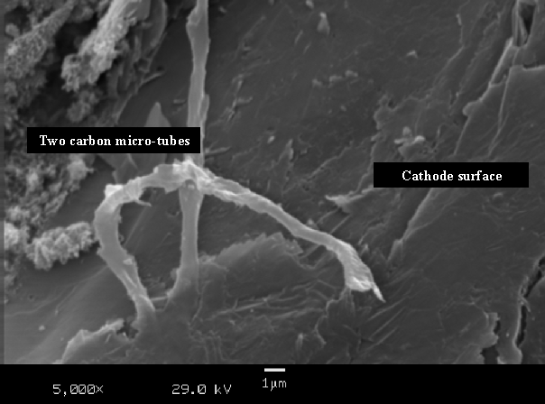 3. Experimental findings The SEM photographs of the sedimented in the water samples of the cathode can be seen in Figs.2-4. As one can see in Figs 2-4, micro-tubes were indeed formed during the process. They can be described as follows: