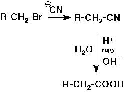 - SN2 reakcióban alkil-halogenidekbõl CN--dal