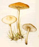 A mezei szegfűgomba (Marasmius oreades) kalapja fakó okkersárga, krémszínû, nedves állapotban halványbarnás. Ritkán álló lemezei a kalaphoz hasonlóak vagy kissé világosabbak. Tönkje vékony, merev, rostos, nehezen elszakítható. Kellemes fûszeres szagú és ízû. Füves helyen, gyakran boszorkánykörökben, sorokban terem. Csak a kalapja ehetô, jól szárítható, kiváló levesgomba. |