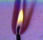 De vissza a Földre! Közvetlenül az égô kanóc fölött alakul ki a láng sötét magja. A láng felsô része fényes, sárga, alja világoskék. A sötét mag alacsony hômérsékletû, 600 oC-os, a sárga tartomány közepe körülbelül 1200 oC-os. A legmelegebb a sárga tartomány széle (1400 oC-os).