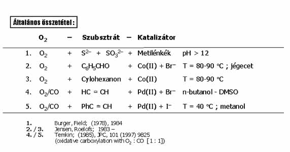 Az O2 oszcillátorokban az oxidálószer a vízben oldott oxigén. Összetételüket a 12. ábrán mutatom be. Ebből a csoportból laboratóriumunk nem állított elő képviselőt.