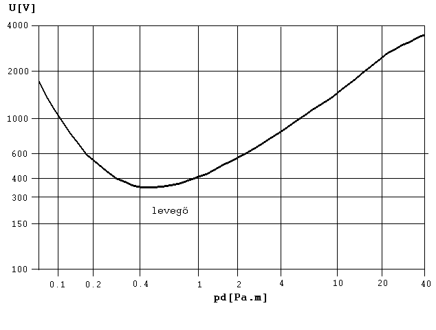 3. a jól ismert Paschen egyenlet. Ábrázolva a 2.2. ábrán látható.