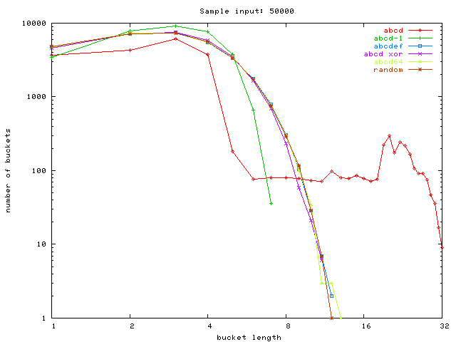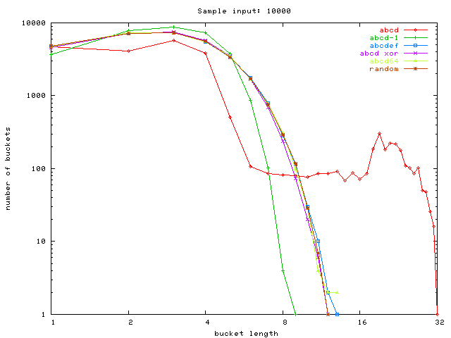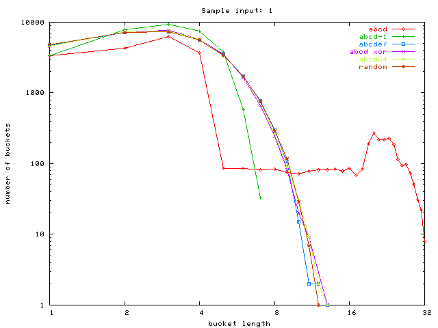 Sample graphs: abcd, abcd-1, abcdef, abcd_xor, abcd64, hash size 32771