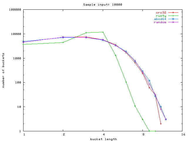 Sample graphs: crc32, rusty, abcd64, hash size 32767