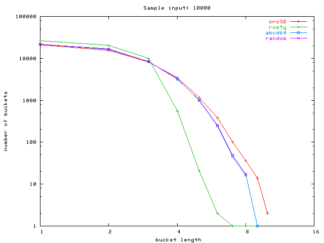 Sample graphs: crc32, rusty, abcd64, hash size 65537