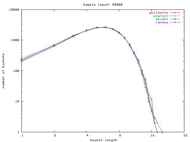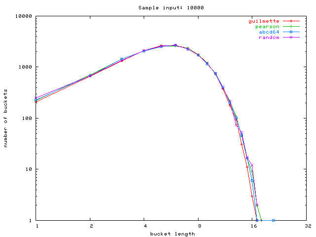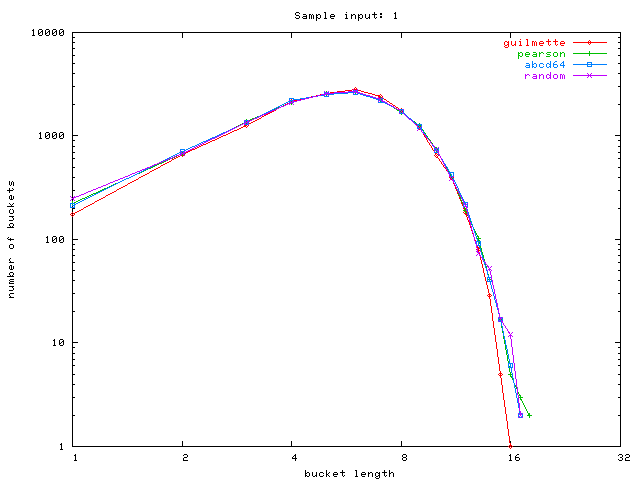 Sample graphs: guilmette, pearson, abcd64, hash size 16383