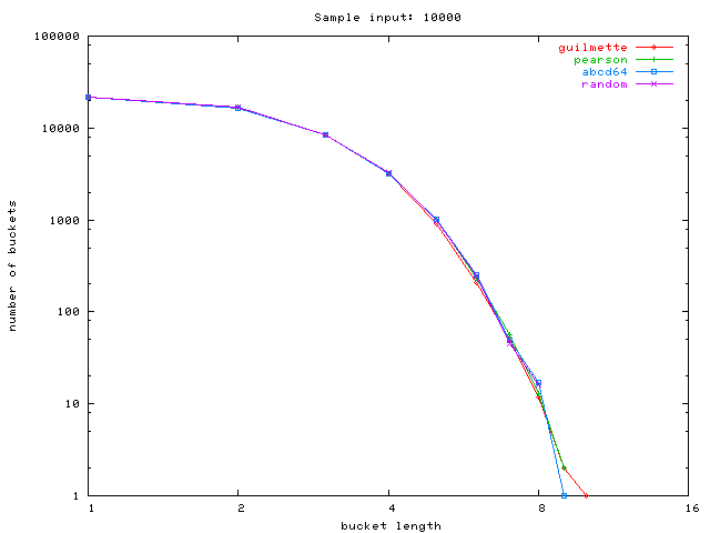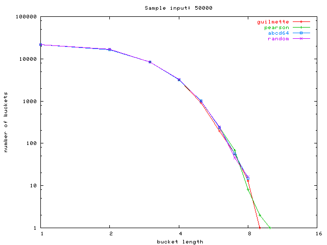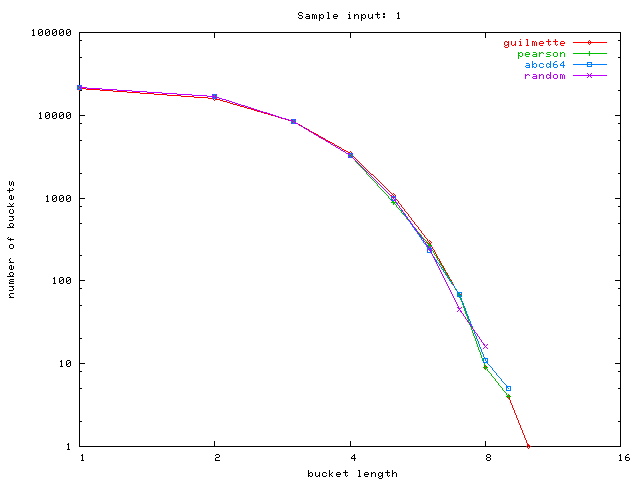Sample graphs: guilmette, pearson, abcd64, hash size 65537