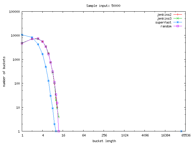 Sample input: hash size 32771, 50000 clients